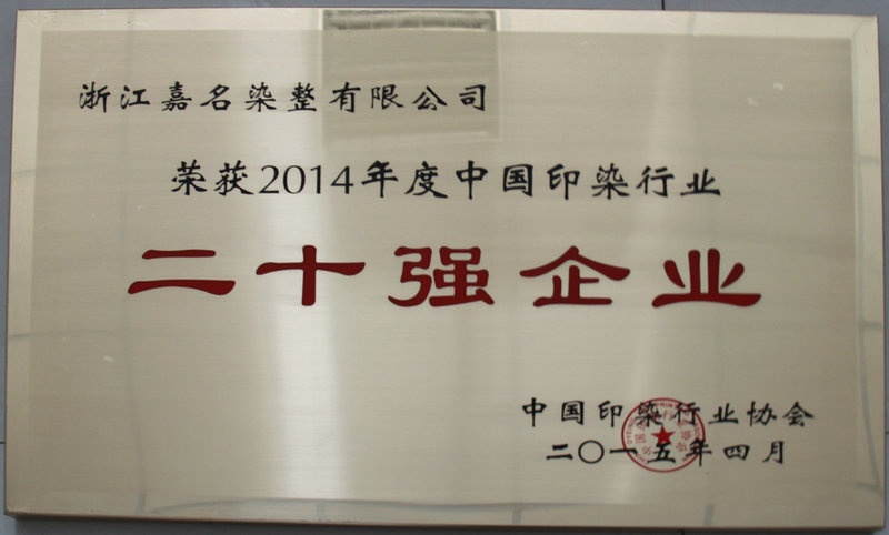 浙江尊龙凯时染整有限公司获“2014年度中国印染行业企业20强”