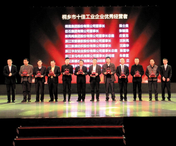公司自2009年度获得桐乡市十大突出孝顺工业企业声誉后,,,时隔四年又重新荣获此殊荣,,,这是全体尊龙凯时人在莫总向导下,,,同心协力,,,奋力拼搏的效果,,,可喜可贺,,,我们要把此声誉作为推动和动力,,,珍惜声誉,,,倍加起劲,,,勤劳事情,,,争取在2015年取得更优异效果。。。
